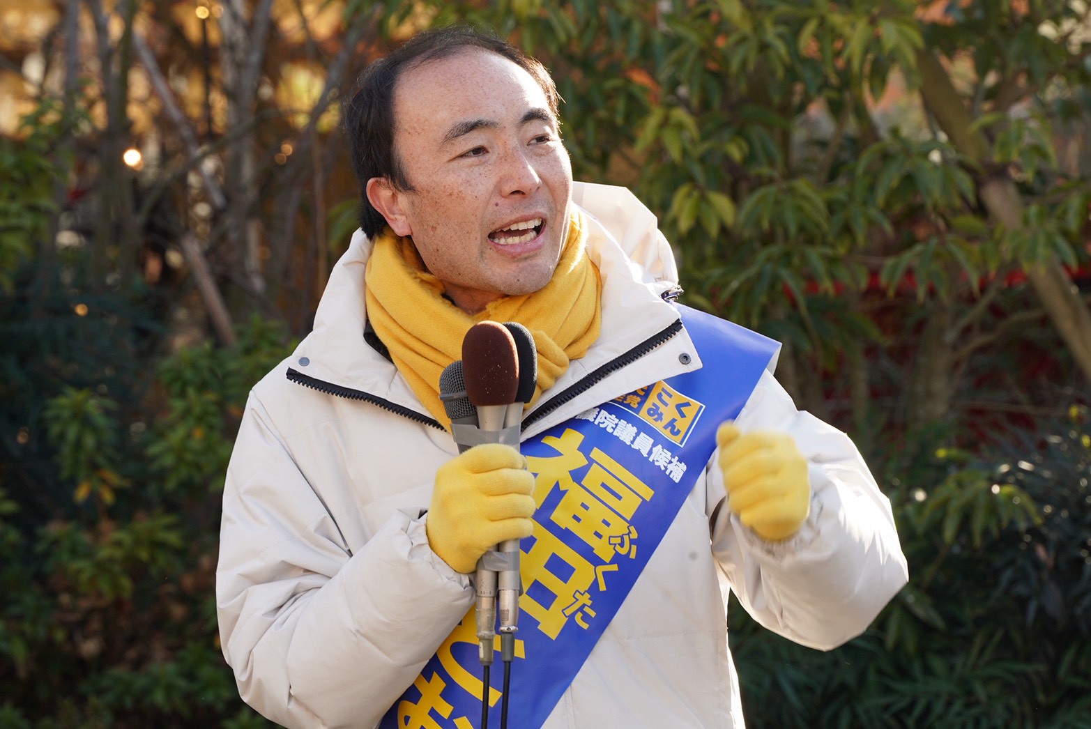 続いて玉木代表は「治療と政治は似ていて、緊急時には『対決より解決』の姿勢が大事である」とし、「福田候補は誰よりも人を、命を大切にする。そんな候補が思う存分国民のために働けるよう、チャンスを与えて欲しい」と聴衆に呼びかけた。